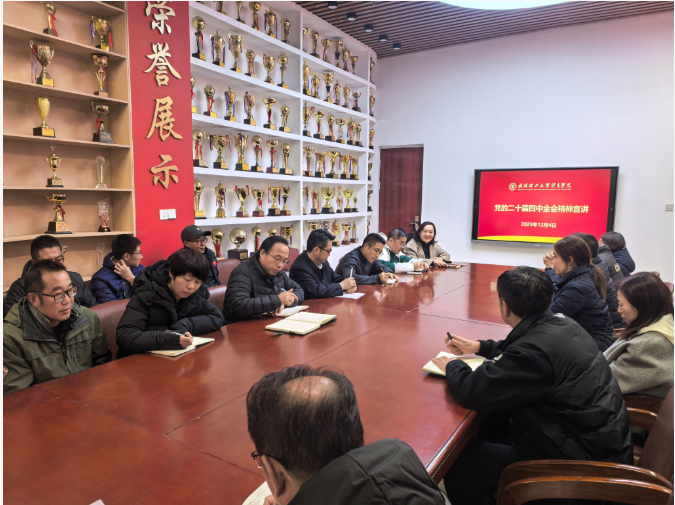 12月4日,体育学院党委书记聂微菁以《认真贯彻落实党的二十届四中全会精神奋力开创中国式现代化建设新局面》为题讲授专题党课。学院全体班子成员、内设科室干部参加学习。